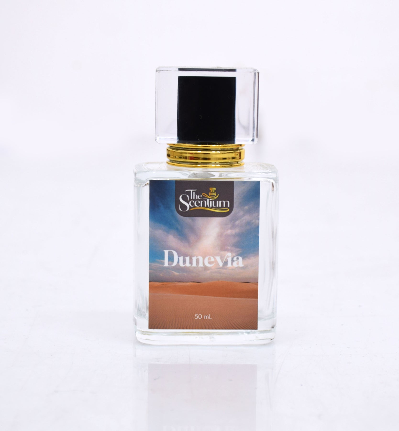 Dunevia is an electrifying fragrance inspired by the legendary Dior Sauvage. With its raw freshness and powerful woody trail, this scent captures the spirit of the open desert sky — wild, free, and undeniably masculine.